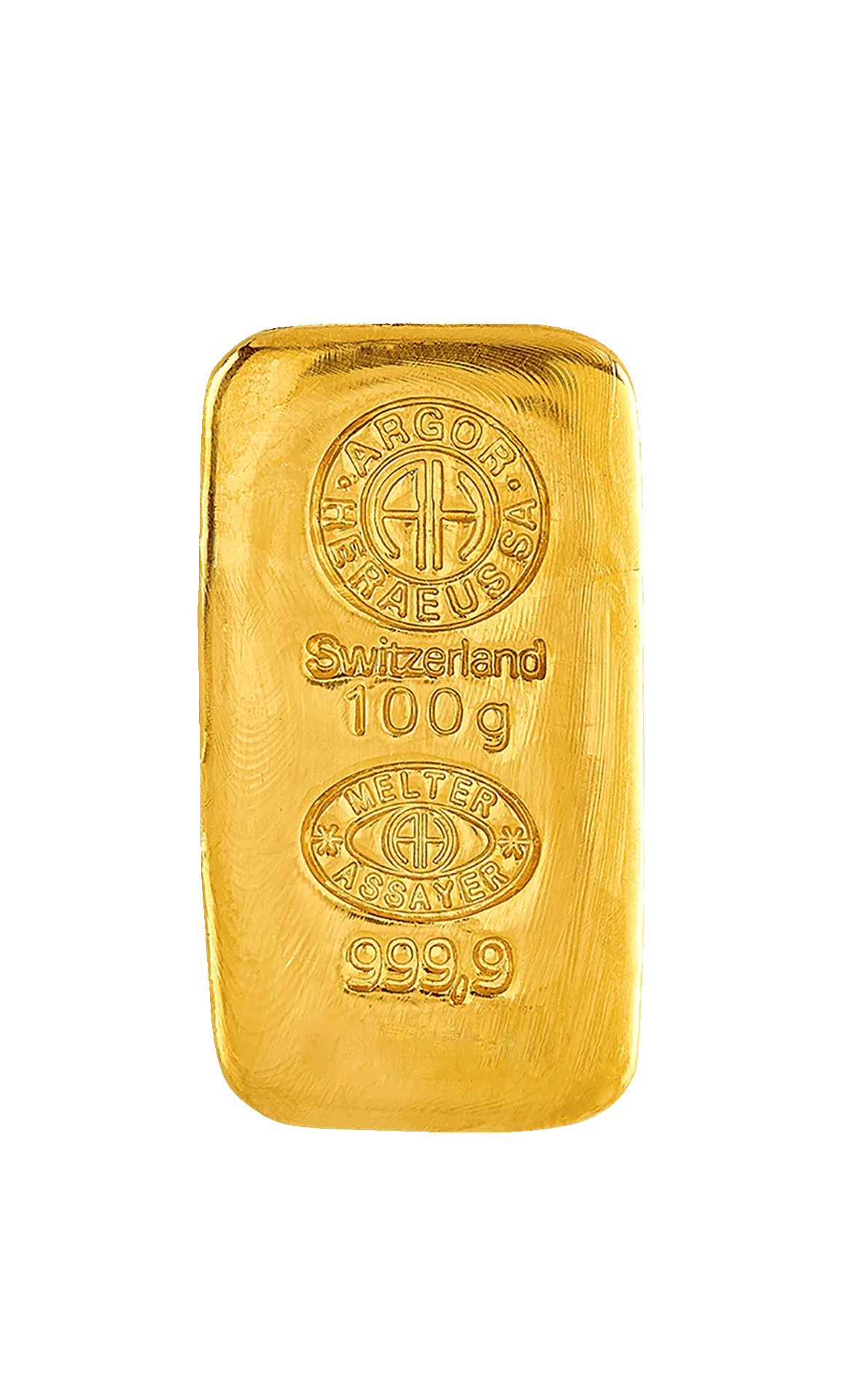 Litý zlatý slitek Argor-Heraeus 100 g